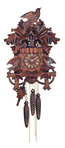 All mechanical cuckoo clocks with moving figurines, music or 8-days-movement have wooden hands, a wooden cuckoo and night switch-off.