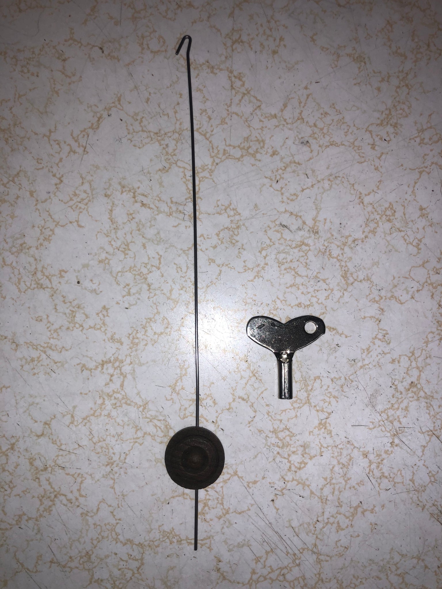 This is a vintage pendulum and winding key, suitable for a novelty cuckoo clock.
